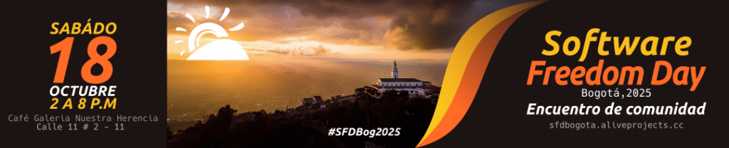 Bogotá, 10 de octubre de 2025 – El sábado 18 de octubre, de 2:00 PM a 8:00 PM, Bogotá será sede del Software Freedom Day 2025 (#SFDBog2025), una celebración comunitaria de entrada libre que reunirá a proyectos, colectivos, organizaciones y personas entusiastas del software libre en el Café Galería Nuestra Herencia, ubicado en el Centro Histórico de la ciudad.