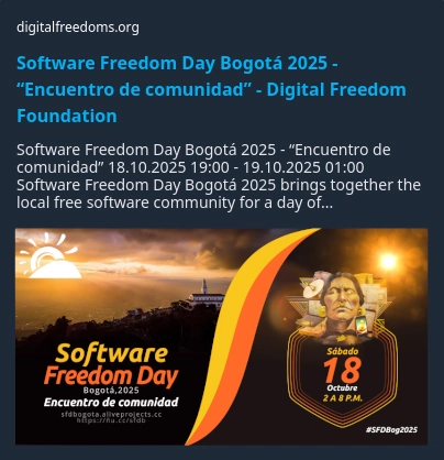 El próximo sábado 18 de octubre, de 2 de la tarde a 8 de la noche, nos encontraremos en el Café Galería Nuestra Herencia para celebrar el Software Freedom Day 2025. Pero esta no es solo una celebración más: es un llamado a la construcción colectiva, al reencuentro, a reconocernos en nuestras luchas y sueños compartidos por las tecnologías libres.